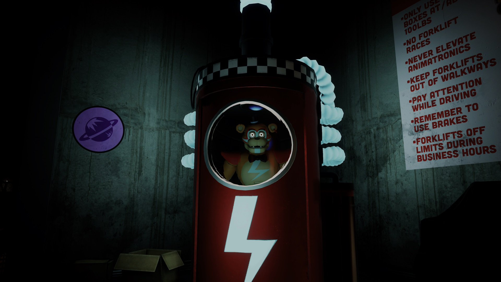 本シリーズお馴染みのクマのアニマトロ二クス「フレディ」が今回は味方として登場し、関係者だけが知るヒントや警告を伝えてくれたりとプレイヤーが唯一頼りにできる味方になる。